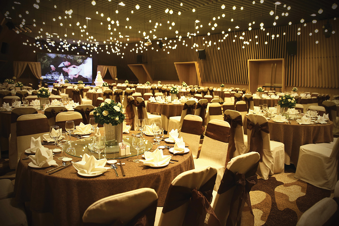 Gallery Hall được thiết kế hệ thống đèn độc đáo tạo nên một không gian lung linh hoàn toàn khác biệt. Trong không gian lãng mạn, vô số ánh đèn lấp lánh tựa pha lê vẽ nên bầu trời đầy sao, tỏa sắc vàng ấm áp như thay lời chúc phúc dành cho các đôi uyên ương. Bên cạnh đó là những giai điệu du dương của những bản giao hưởng mang đến sự lãng mạn, đẳng cấp cho bữa tiệc mừng trăm năm hạnh phúc. Đội ngũ chuyên xây dựng tiệc cưới theo chủ đề của Gallery Hall sẽ phác hoạ nên khung cảnh đầy thi vị và tư vấn một chương trình tiệc dành riêng cho từng khách hàng. Phong cách cổ điển Châu Âu hay Á Đông huyền bí, xa hoa hay hiện đại,… đều có thể kết tinh thành hiện thực.